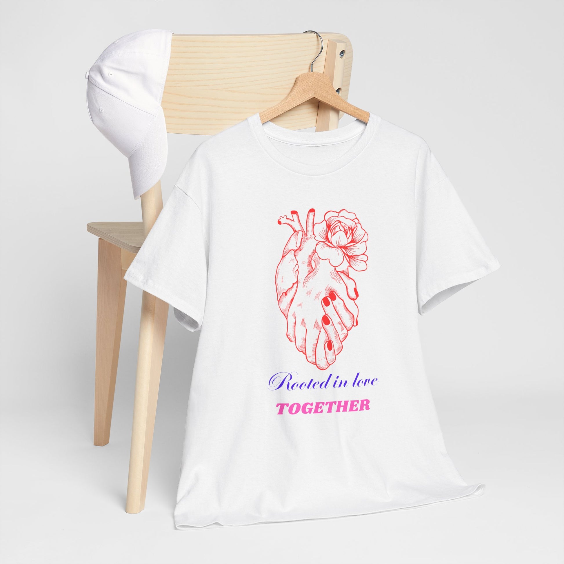 Heart & Rose Graphic Tee — “Rooted in Love Together” Romantic Couple Shirt